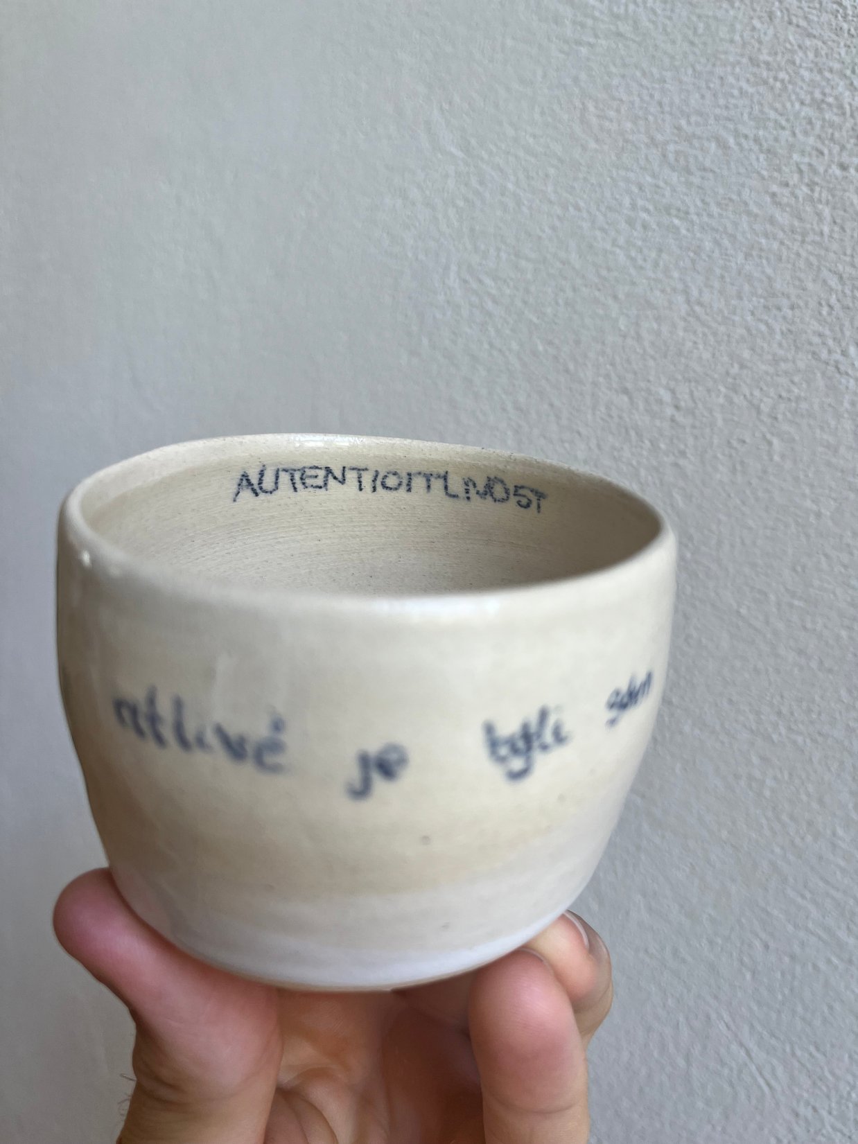 POETRY POTTERY – aktuálně spolutvořím na keramických výrobcích, do nichž jsou otištěná má.slova – jemnoduchost nebo otevřelost či jiné novotvary. Záleží materiál od materiálu, ale můžeme použít také úryvky z mých básní či slovní spojení.